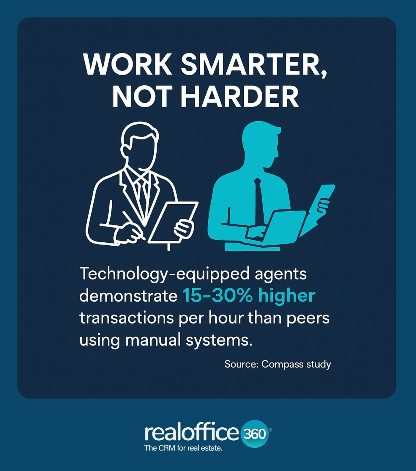 Comparison showing tech-equipped agents achieve 15-30% higher transaction rates than those using manual systems.