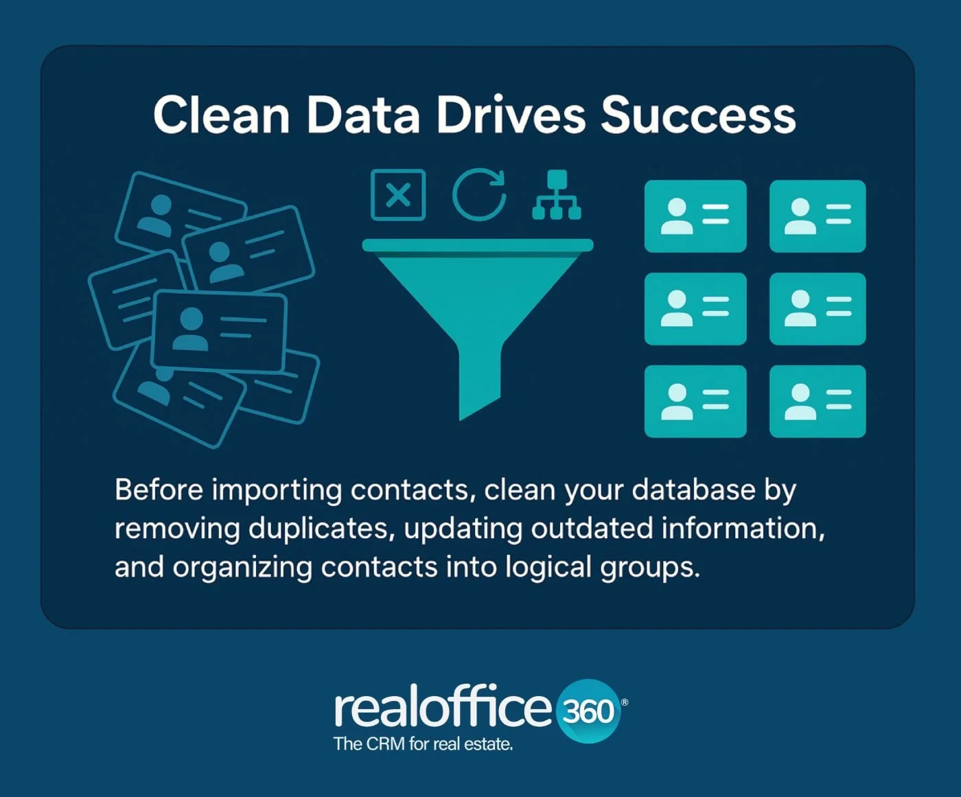 Visual showing contact database cleaning process from messy to organized data.